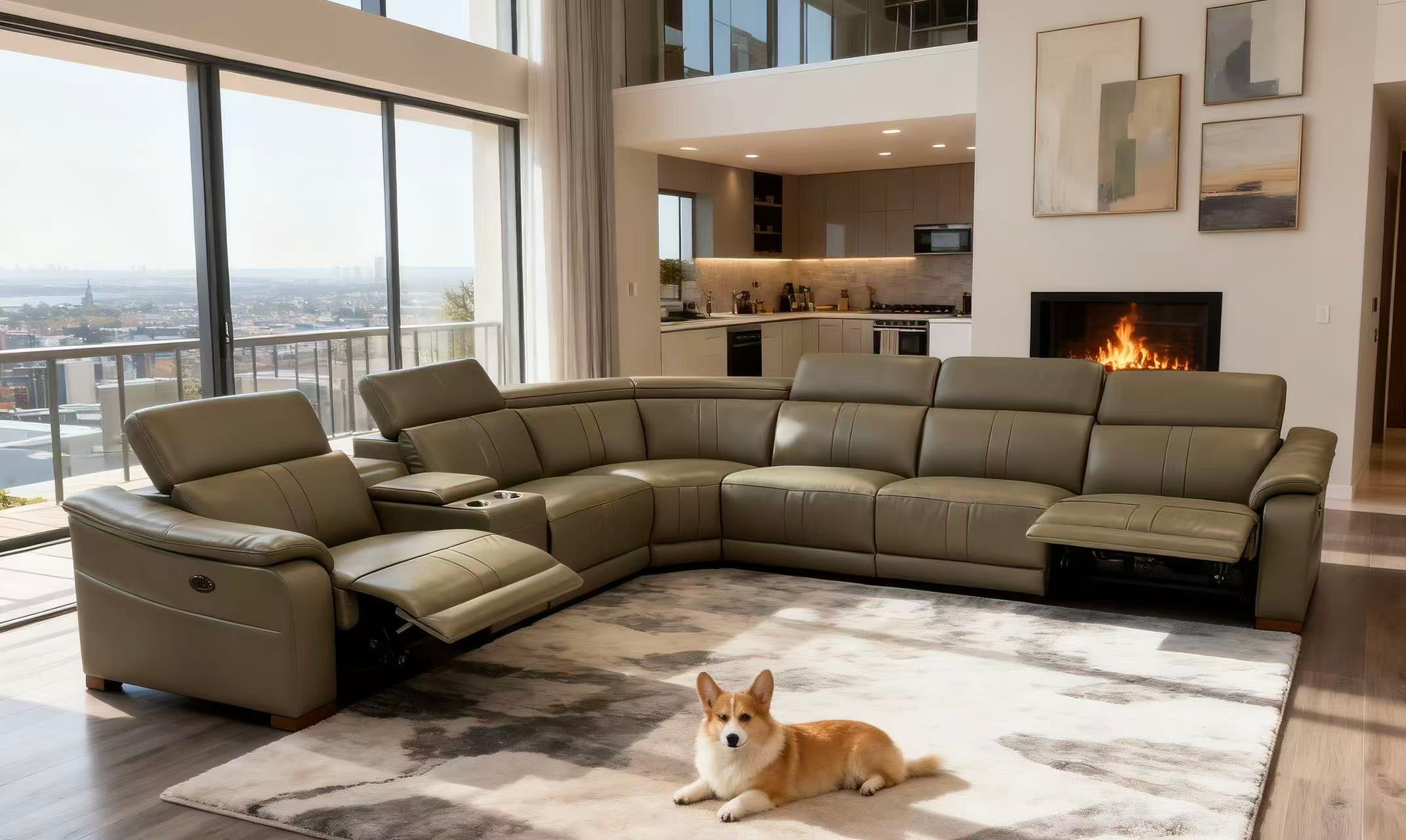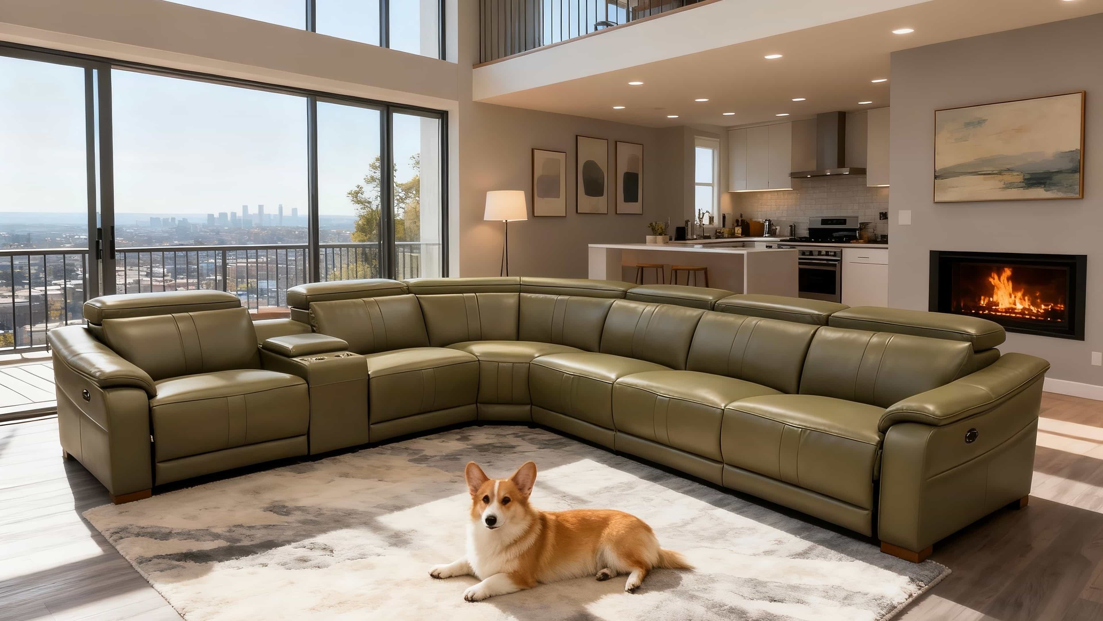 5, With its expansive L-shaped silhouette and warm amber tones, this centerpiece seamlessly anchors grand living spaces with effortless elegance.