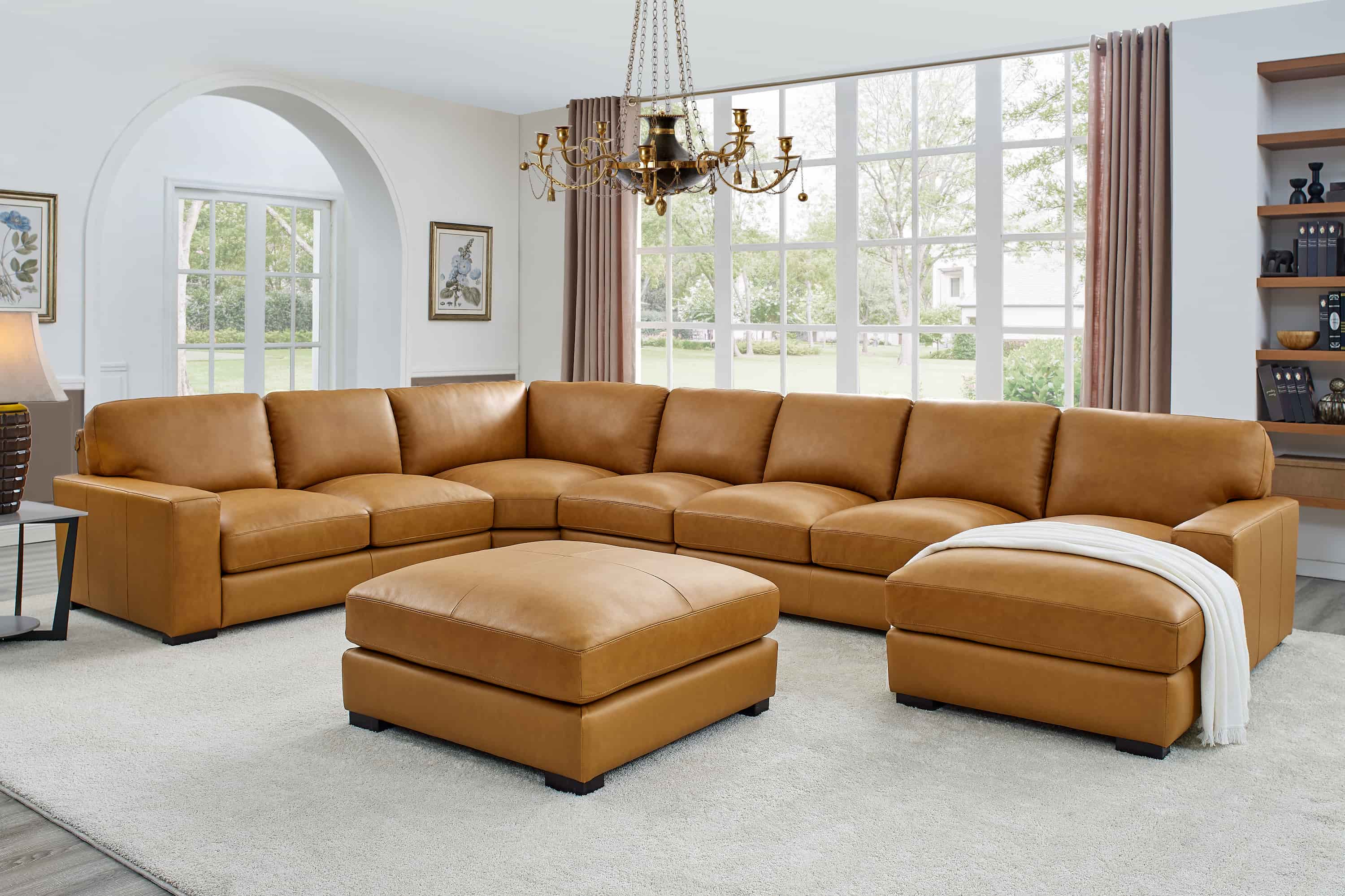 1, This impressive seating collection is anchored by a massive L-shaped sectional and a matching oversized ottoman, creating an expansive social hub for any grand living space.