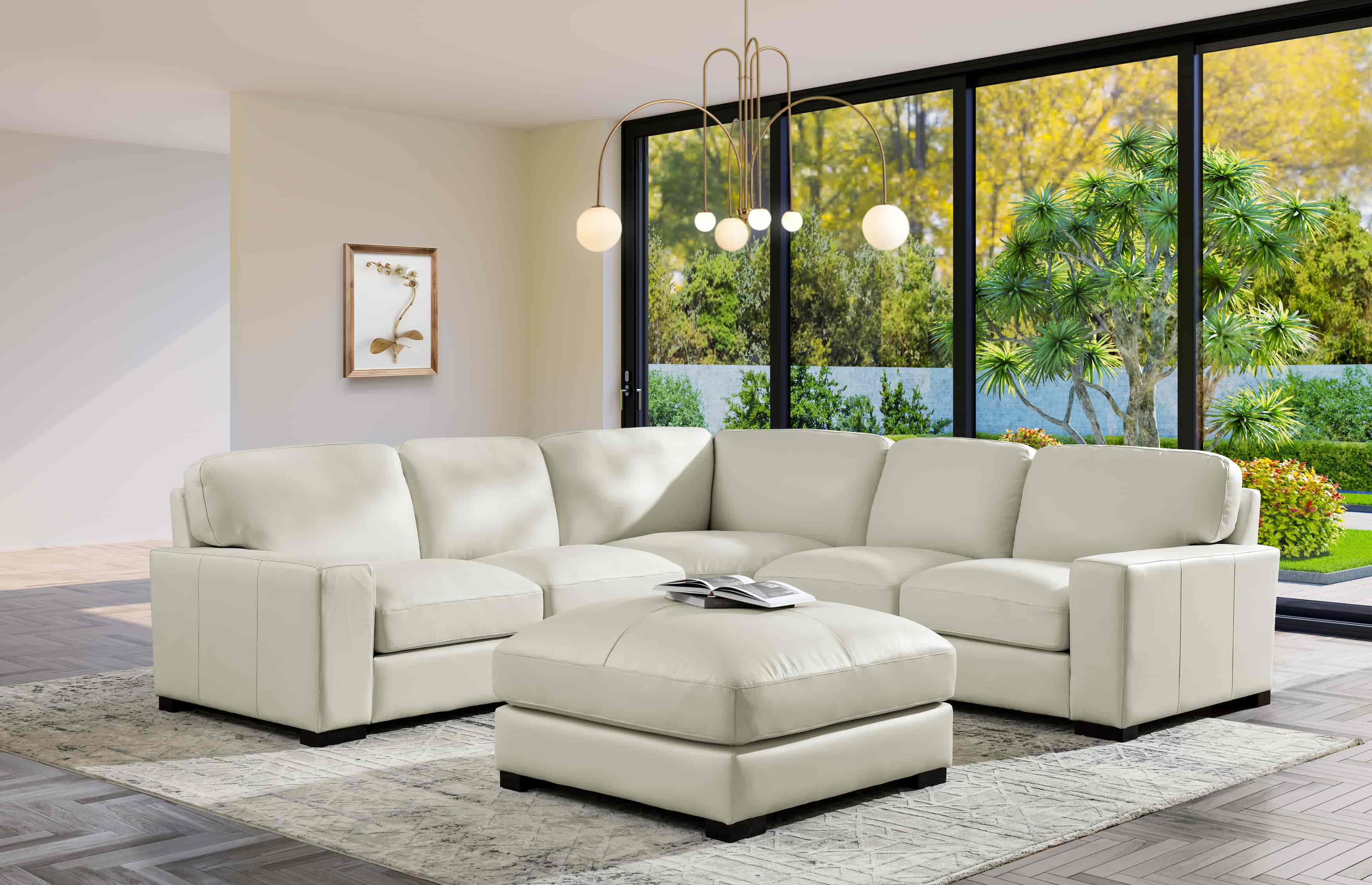 1, The modular-inspired design and clean architectural lines allow this set to anchor any large living space with a sense of modern, grounded elegance.