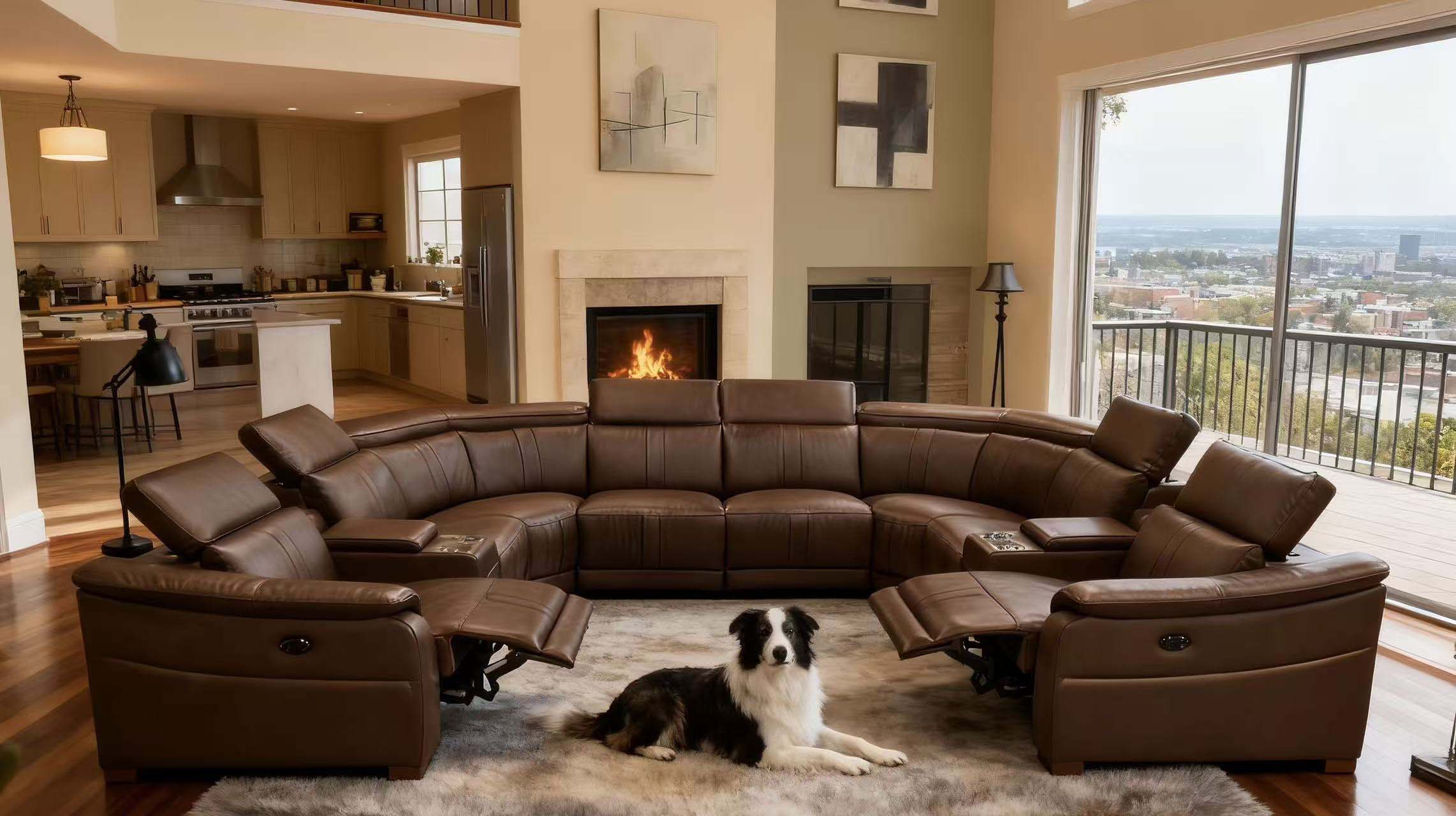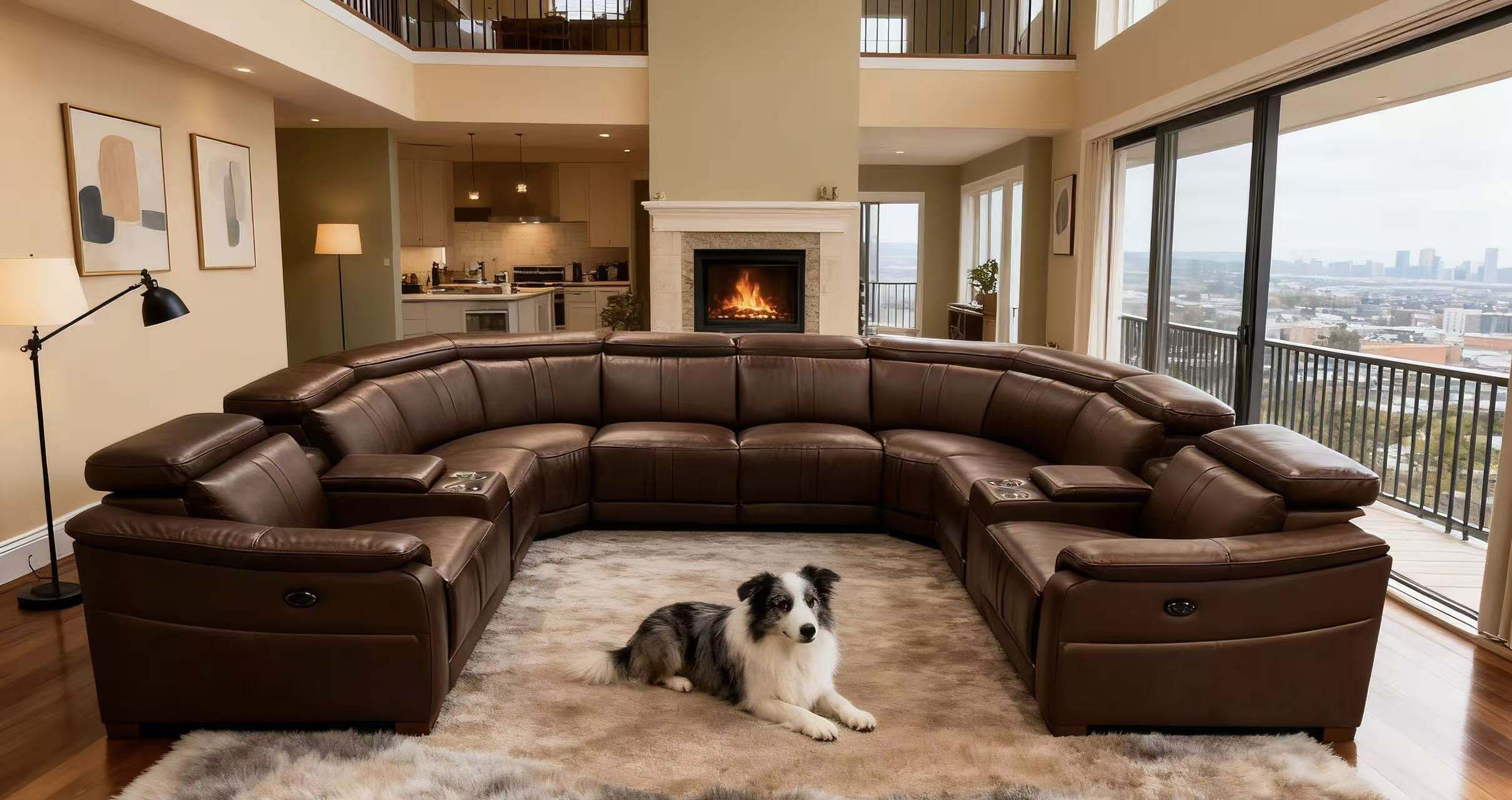 5, With its expansive U-shaped silhouette and warm amber tones, this centerpiece seamlessly anchors grand living spaces with effortless elegance.