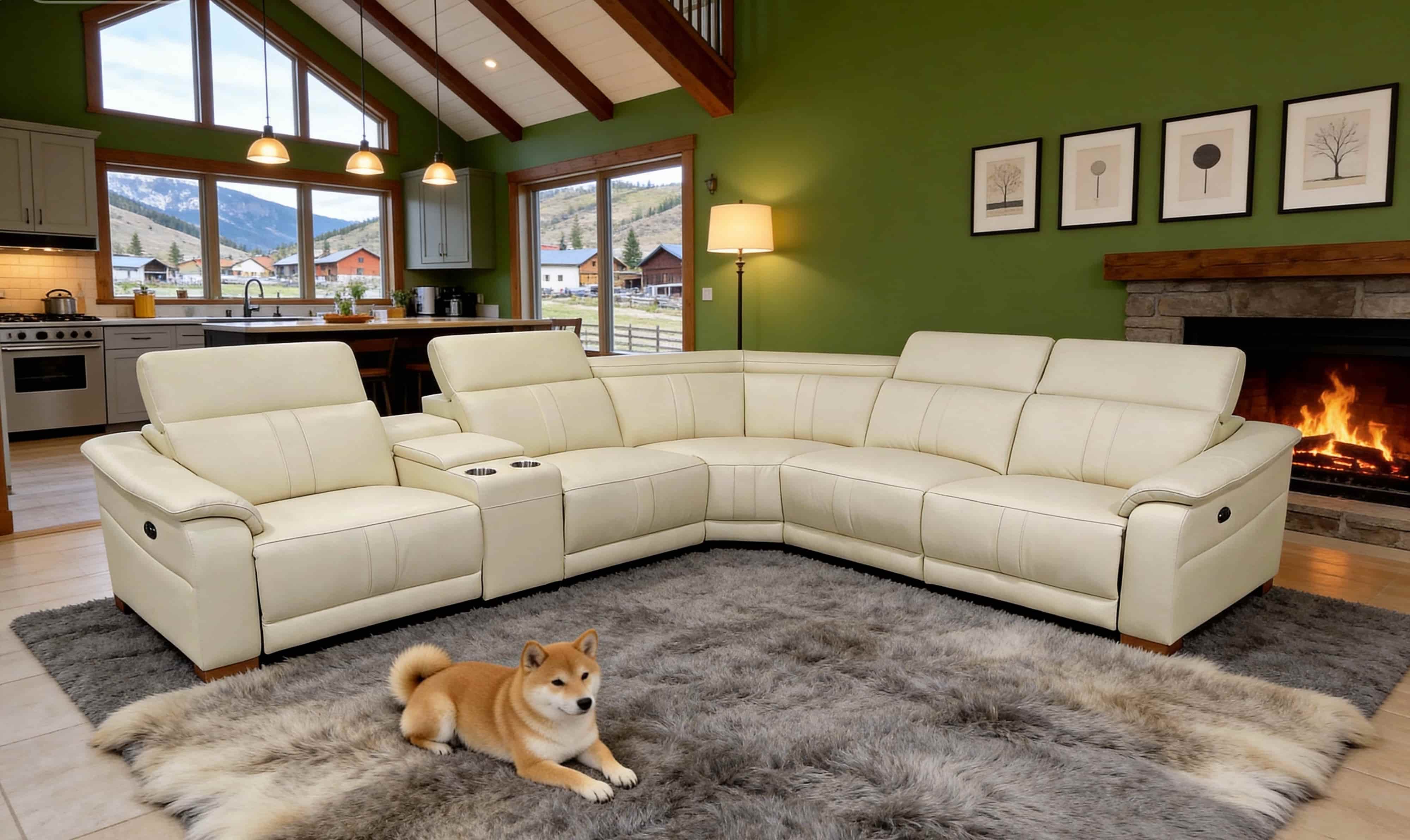 5, With its expansive L-shaped silhouette and warm amber tones, this centerpiece seamlessly anchors grand living spaces with effortless elegance.