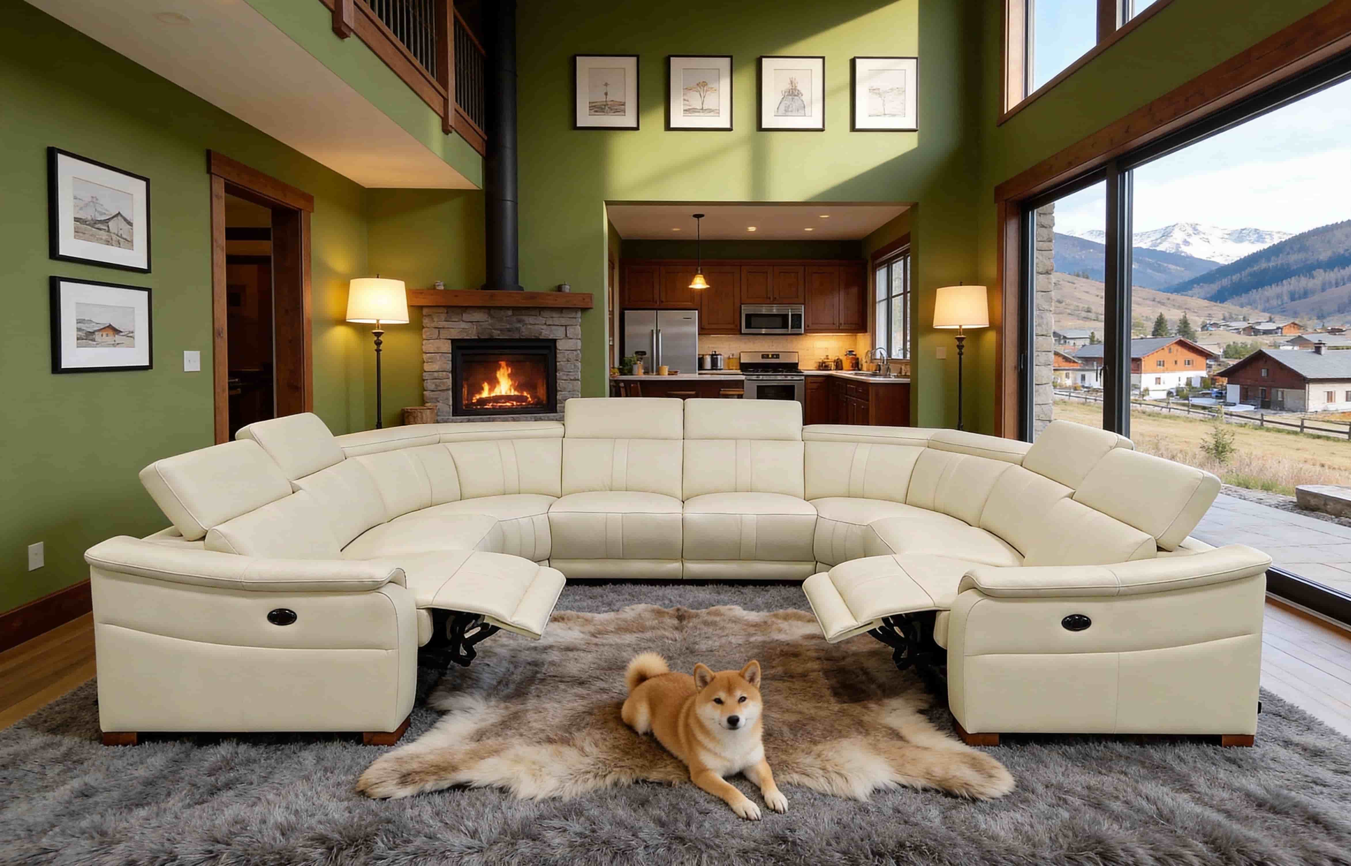 5, With its expansive U-shaped silhouette and warm amber tones, this centerpiece seamlessly anchors grand living spaces with effortless elegance.