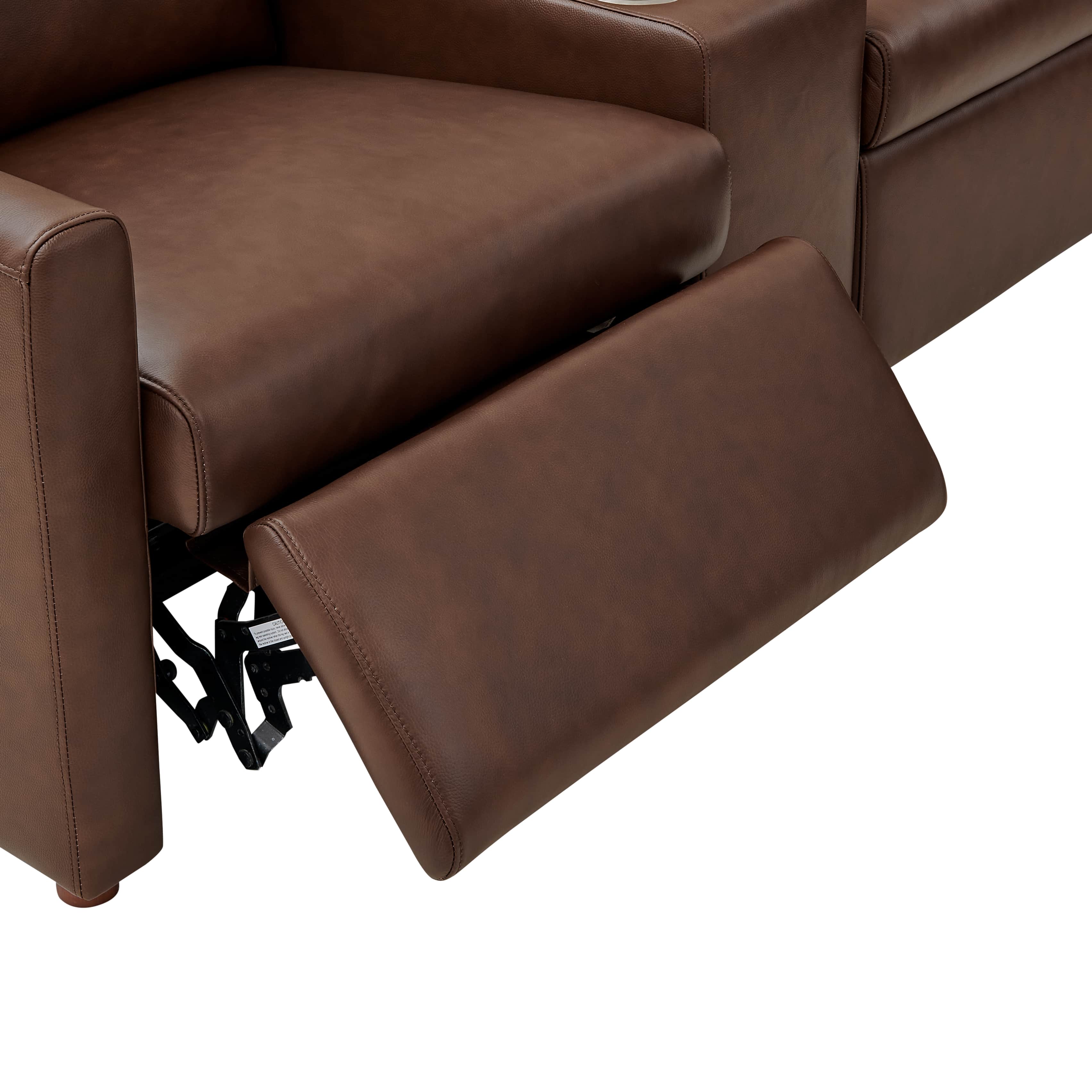 • Optioned Storage Console: Deep storage compartment and built-in cupholders for ultimate theater-style convenience.
