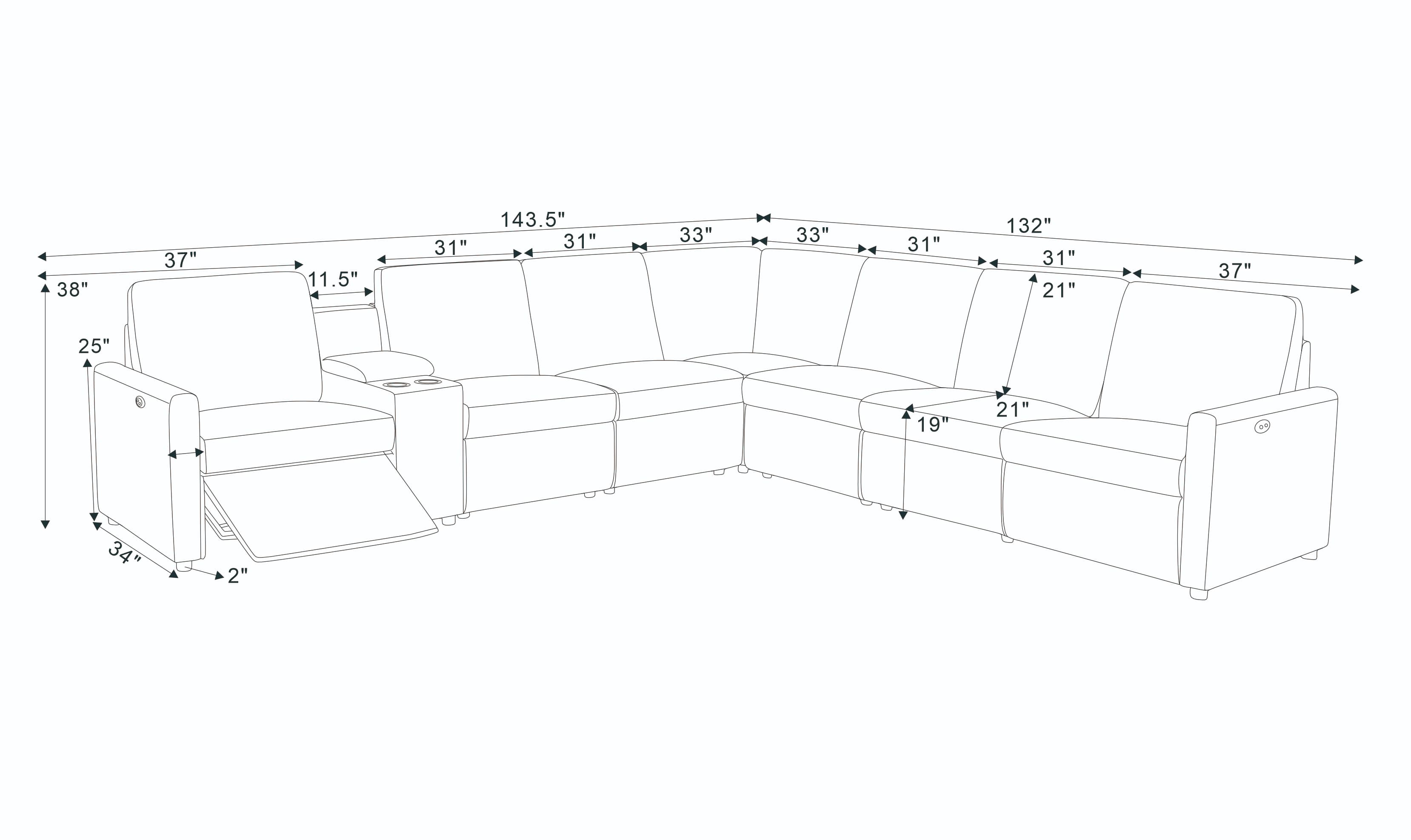 4, Integrated with power recliners, this configuration allows users to find ultimate relaxation angle at the touch of a button.