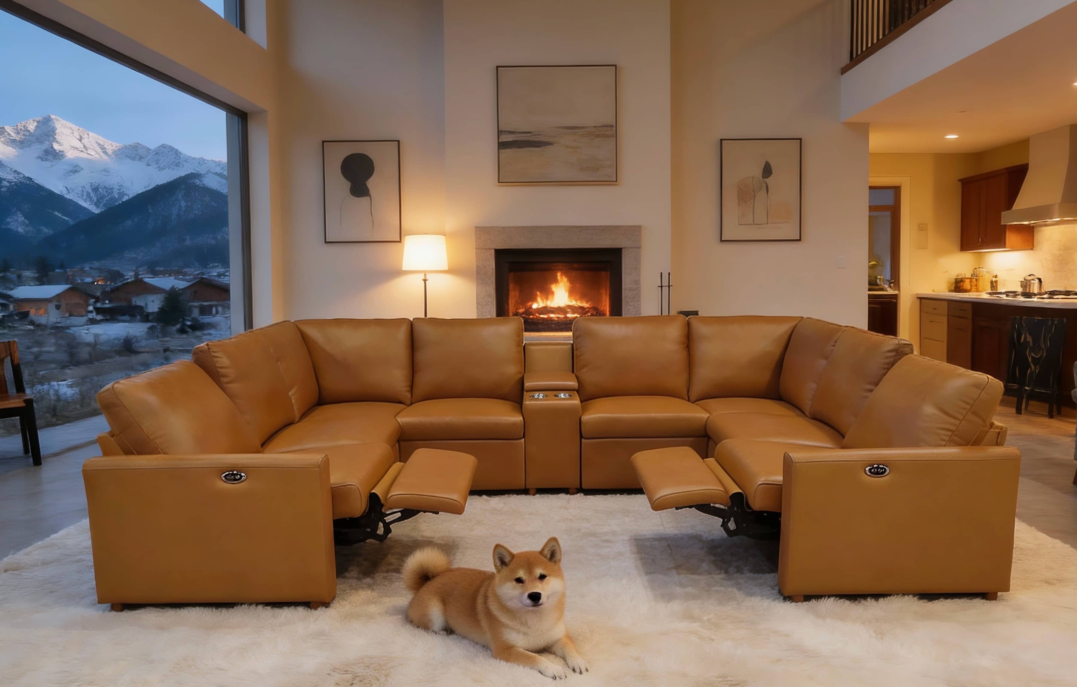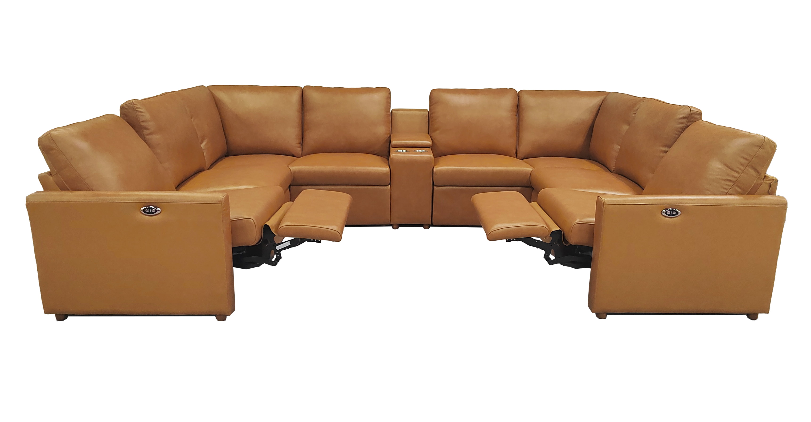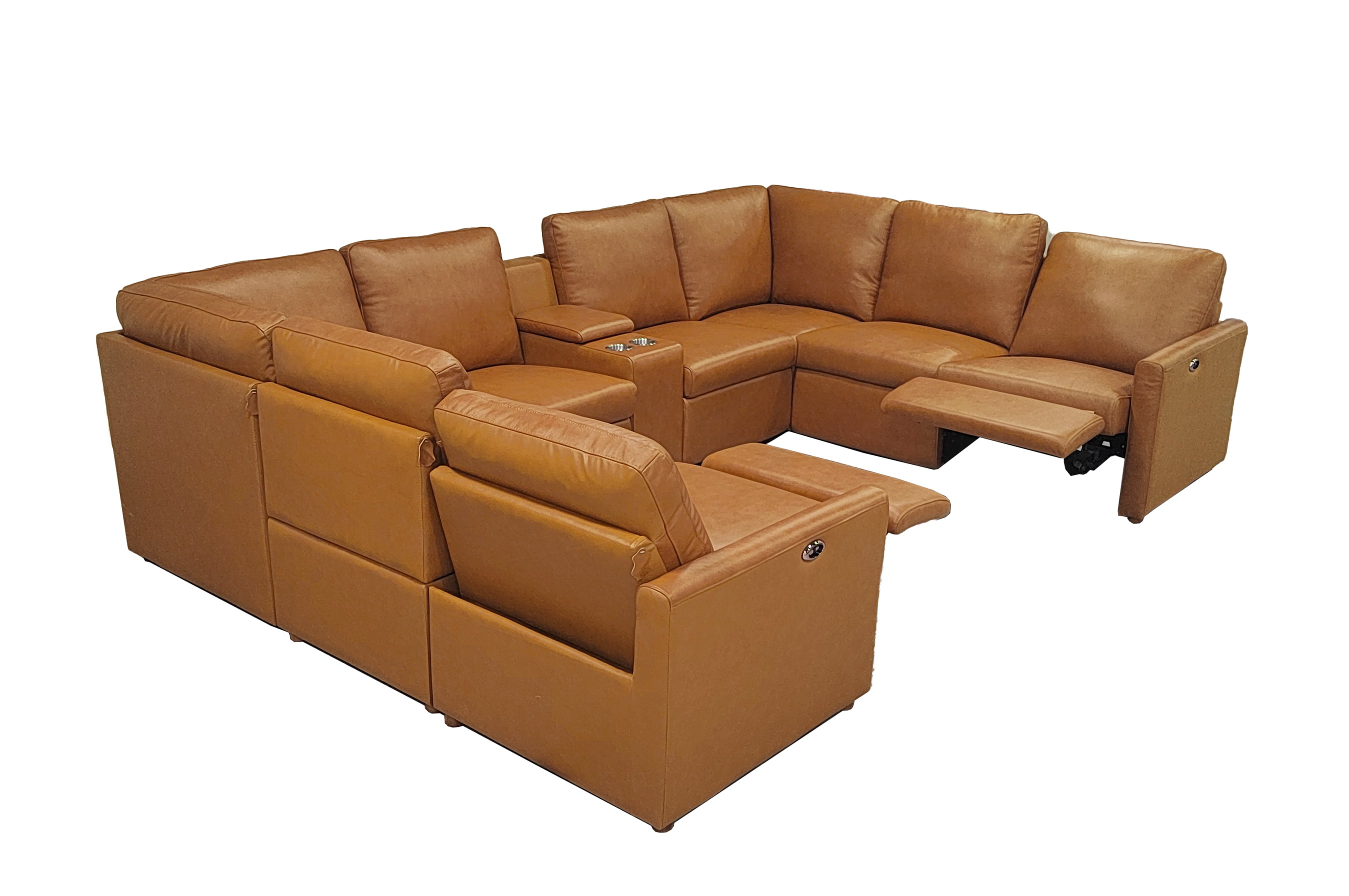 • 4, This 9-piece configuration integrates two power recliners and a multi-functional storage console, making it the ultimate command center for home entertainment.