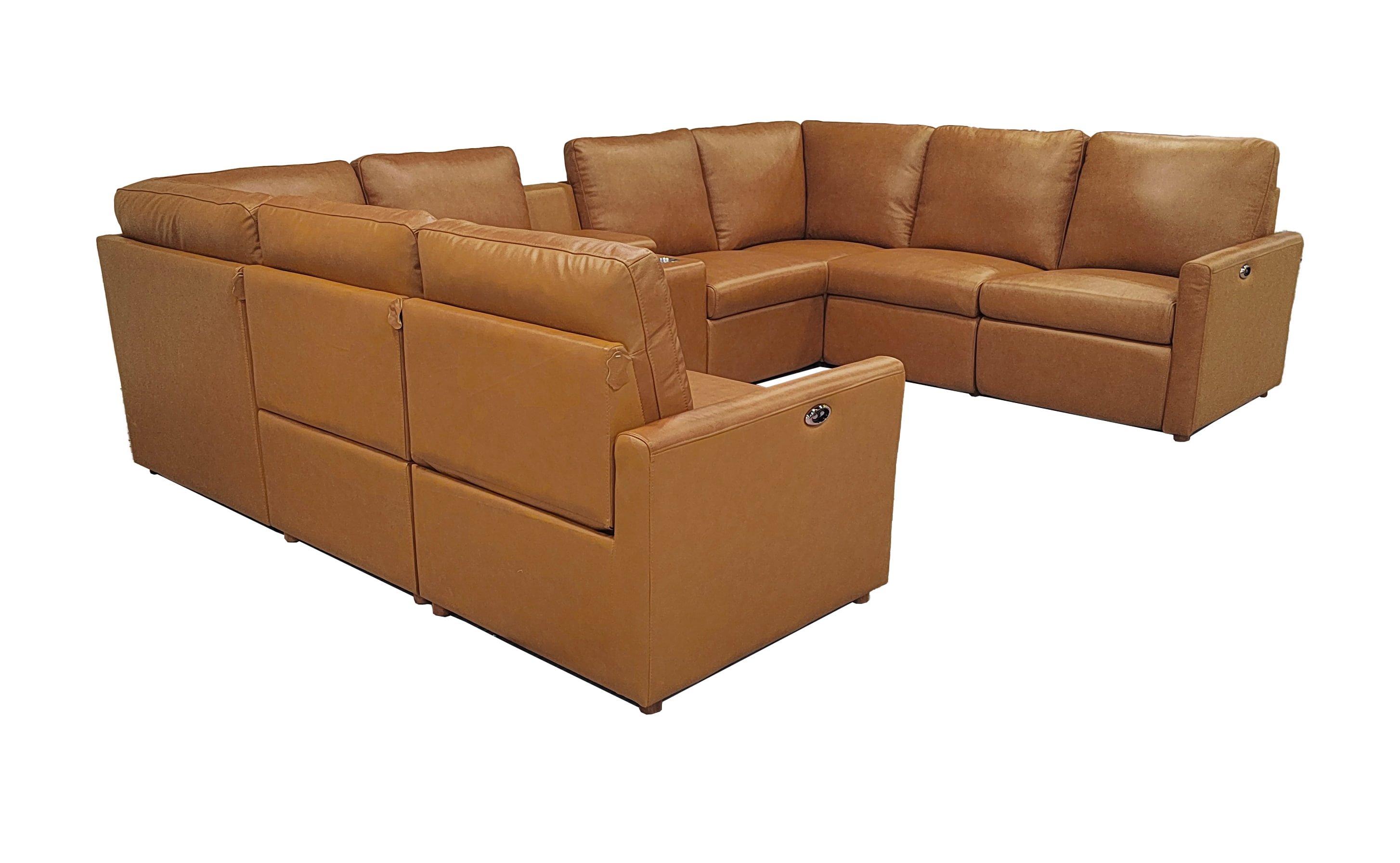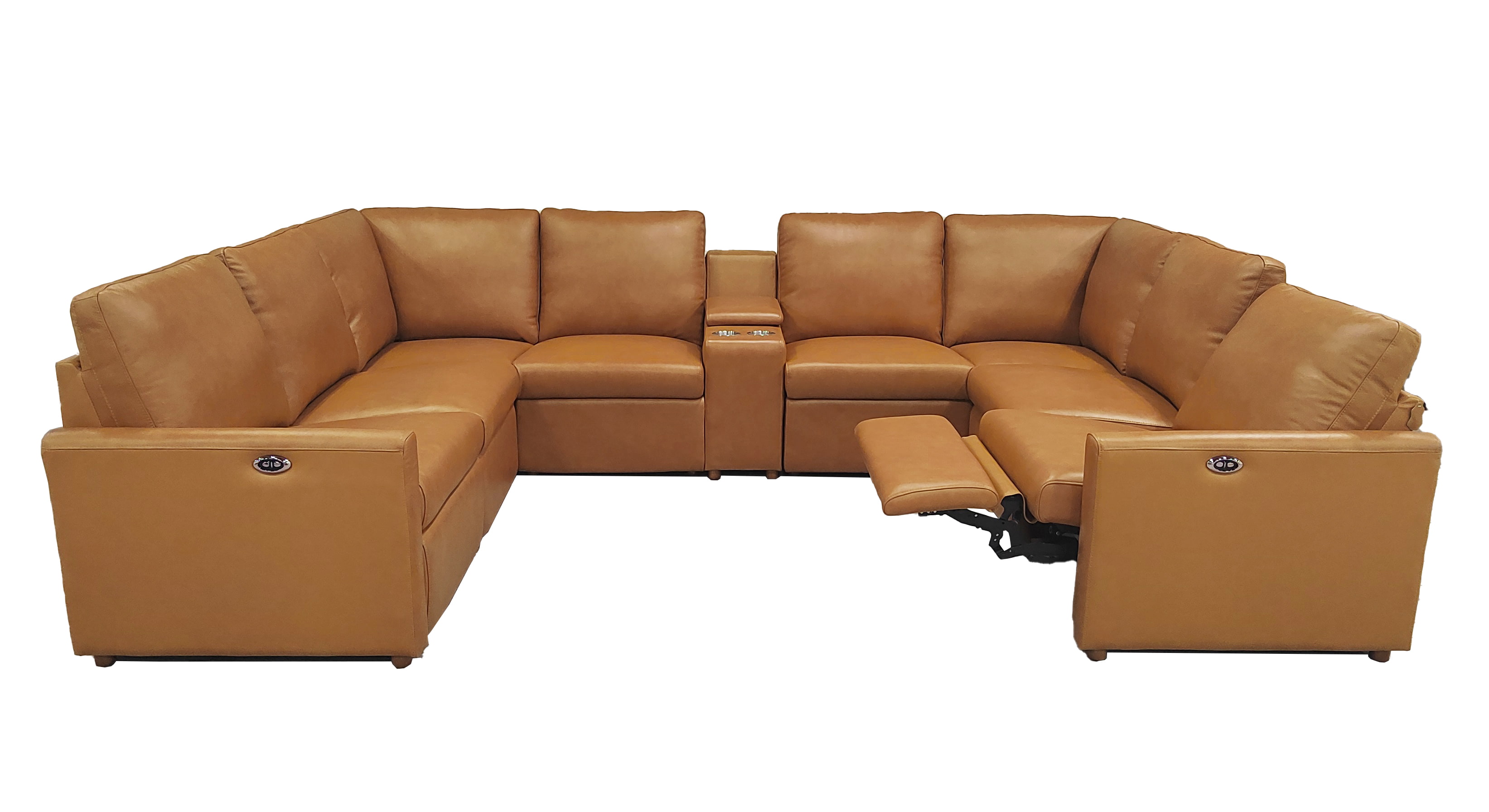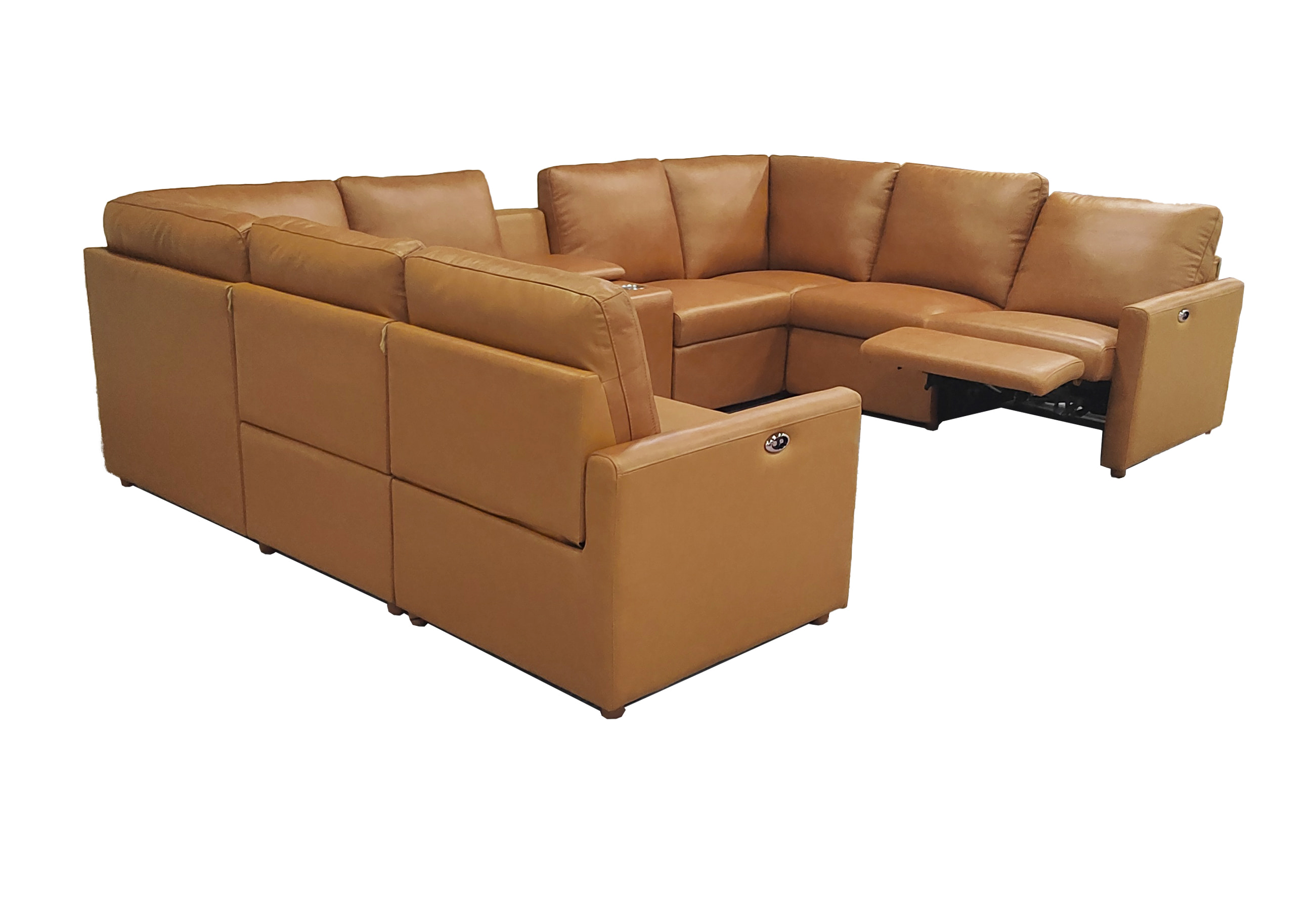 • 4, This 9-piece configuration integrates two power recliners and a multi-functional storage console, making it the ultimate command center for home entertainment.