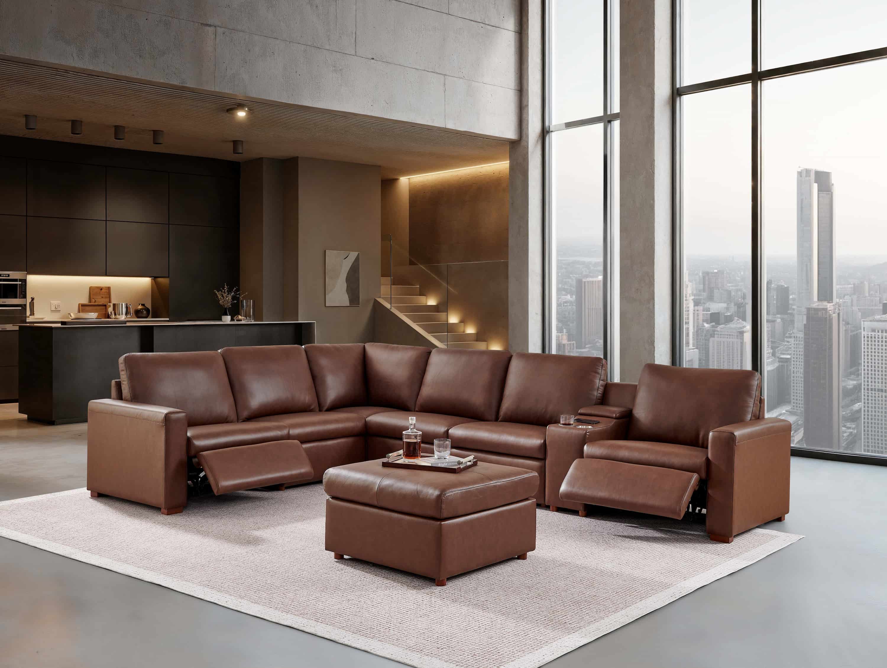 2, Featuring dual power recliners and an integrated command center, this modular suite effortlessly masters the balance between executive style and family utility.