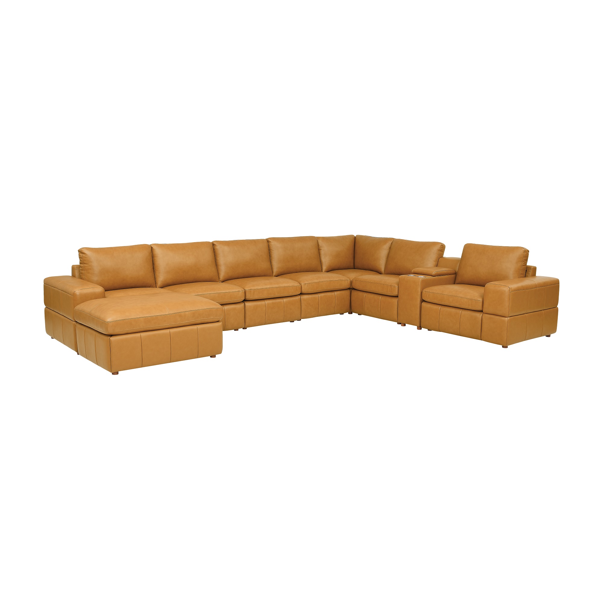 1, Crafted with premium leather-matched upholstery, this 9-piece sectional features top-grain leather on all seating surfaces for a sophisticated touc...