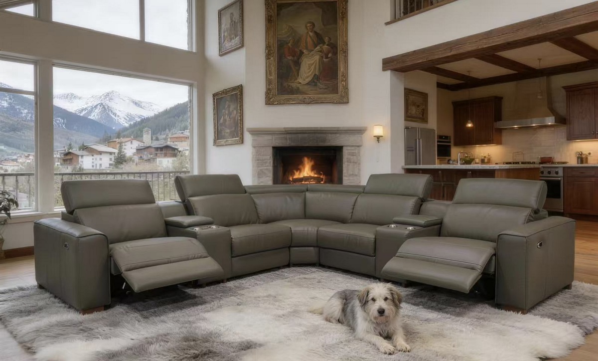 4, The end seats feature power reclining mechanisms, while other module is equipped with an adjustable manual headrest for personalized neck support.