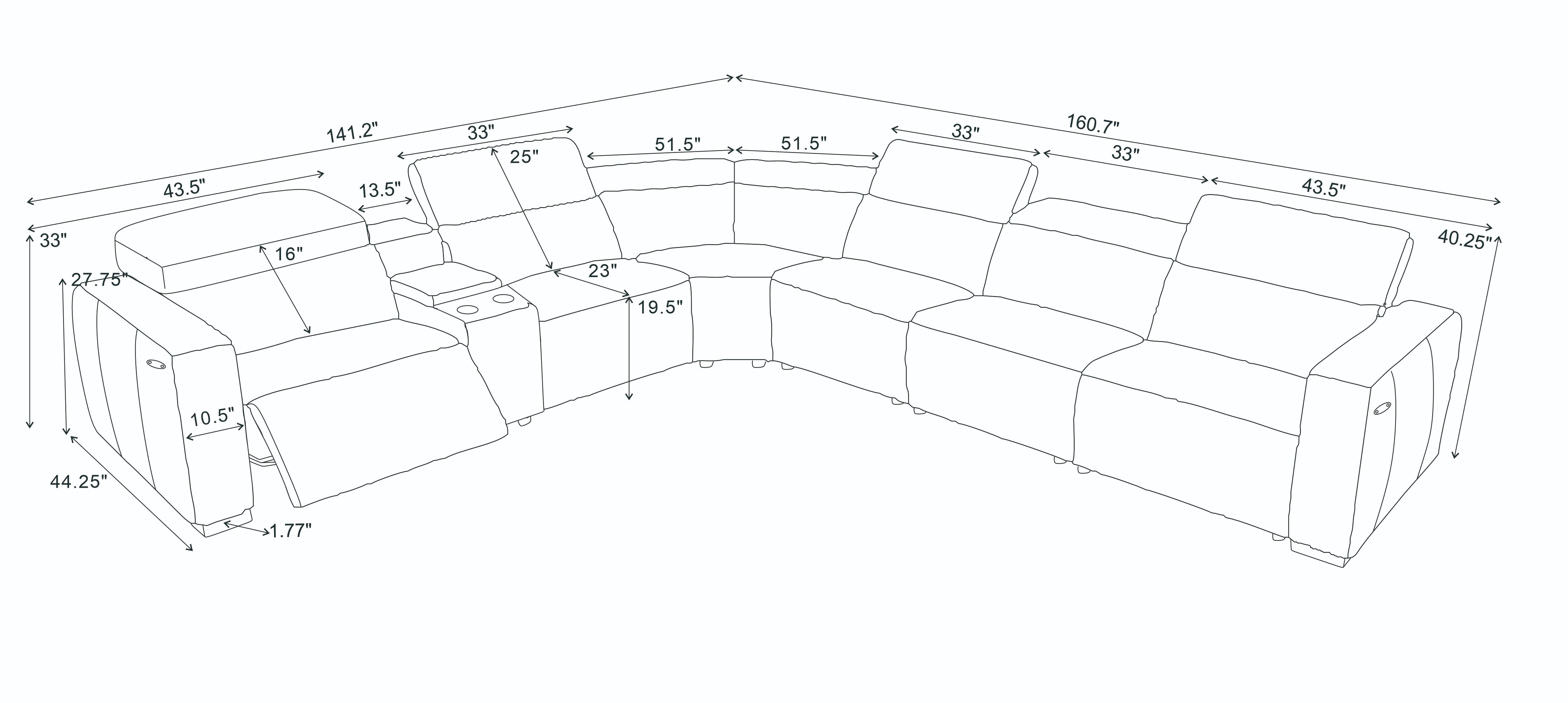 Dual Power Reclining: Smooth, motorized adjustment on end seats for effortless relaxation at the touch of a button.